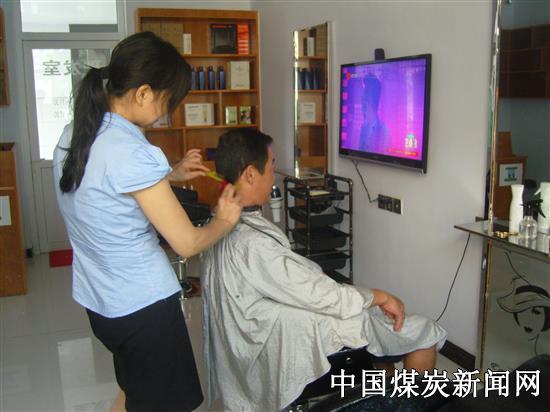 该矿为二十多平米理发室内,添置了镜台2面、剪发椅2套、推车2个、烫发加热机一台、洗头床一个,另有储物柜、饮水机、沙发等用品,最大程度满足理发室所需。此次入驻该矿理发室的两位理发师,由济宁市兖州区“亮点”理发总店选派,均有多年造型理发经验。