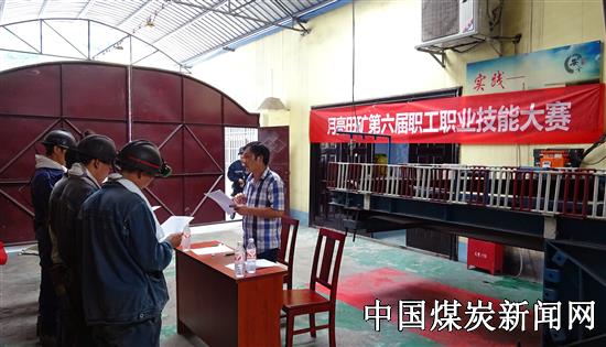 【本网讯】8月7日,在贵州盘江精煤股份有限公司月亮田矿第六届职工职业技能大赛上,16名井下综掘机司机、钻探工在实操基地开展技能比武。