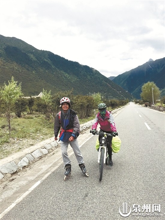 27天2150公里 泉州大三学生轮滑进藏 踩着轮滑进藏 当许多人心怀梦想却踌躇不前时,已经有人大步向前,拼尽全力敲开了梦想之门。他,是郑旭。 近日,泉州轻工职业学院大三学生郑旭成了校园红人。只因他在刚结束的暑假里实现了自己憧憬已久的梦想——只用一双轮滑鞋,27天滑行2150公里到达拉萨。为此,学校正在筹划为他举办“轮滑进西藏”的个人摄影展,激励更多心怀梦想的人勇往直前。 爱玩轮滑萌生进藏想法 轮友赞助装备实现梦想 “之前的生活挺安逸的,我想找机会挑战自己。”20岁的郑旭说自己是安徽人,中学时被父母带来泉州上学生活,现在是泉州轻工职业学院的一名大三学生。 2014年时,一次机缘巧合郑旭接触了花式轮滑,还通过网络向一些国内轮滑高手拜师学艺。三年下来,他技艺大涨,多次参加泉州高校联盟轮滑文化艺术节个人赛,都进了前三名。他说,西藏一直是心之所向的地方,偶然间看到外地有人踩轮滑进西藏,他也想试一试。今年年初开始计划,首先就是要提高体质。为此他坚持每天早起慢跑半小时,做蛙跳,到公园练习爬坡等。而让他惊喜的是,一名网上素未谋面的轮友在得知他的计划后,果断赞助了他近千元的装备,并鼓励郑旭一定要坚持下去。 带着大家的期望和支持,今年7月5日晚,郑旭带着轮滑鞋,独自坐上了开往成都的火车。 7月7日清晨5点,郑旭到达成都。在休息一天后,8日凌晨,他迎着晨光,正式开始了自己的轮滑之旅。 带着青春的冲动,来一场说走就走的旅行。 踩上轮滑跋山涉水 就算受伤也坚持前行 川藏线上,有着众多追逐梦想的人,有的徒步,有的骑行,郑旭算是比较特别的一个,他凭着一双轮滑鞋在梦想的路上驰骋。 在翻越海拔3000多米的二郎山时,郑旭结识了山西医科大学的14名骑行团队成员,并与他们结伴而行。 一路并非坦途,有不少是带有砂石的崎岖道路或涉水路,骑行还算相对容易,踩轮滑就吃力多了。即便如此,郑旭也坚持踩着轮滑慢慢走过去。 在进藏的第三天,在从觉巴山下山时,弯道是360度的“回头弯”。当时郑旭在录视频,滑速比较快,看不见回头弯的路况,连人带鞋踩到沙子和石头滑了出去,撞上路边护栏,造成手和膝盖多处擦伤,腰部挫伤有瘀血。摔倒后,站不起来的郑旭在队友帮助下到山下的医院就医。这次的挫折没有让郑旭放弃轮滑进藏,受伤后的第三天,他继续前行…… 沿路日光暴晒、空腹滑行是常态,还不时会遭遇下雨,但沿途的美景让这些困难变得都不是问题。一路上郑旭遇到了不少热心提供帮助的藏民和驴友,最难忘的是遇到一位双腿残疾,坐着残障车欲前往尼泊尔的大叔。郑旭得知他已经是第六次进川藏线,还特别挂了“不搭车”的牌子,这给了郑旭更大的激励。 最后一天,在连续滑行180多公里后,郑旭终于到达向往的拉萨,亲眼看到了布达拉宫。“当时内心的激动和满足难以言表。”郑旭说,这次旅程共历时27天,翻过14座高山,滑行2150公里。 “无论遇到多大的困难,都应该坚持不放弃。”这是此次旅行给郑旭最深刻的感受。而他的学校也计划在9月底到10月初为其举办个人摄影展,届时将展出郑旭旅途中拍摄的上百幅摄影作品,与师生们分享这不一样的人生经历。