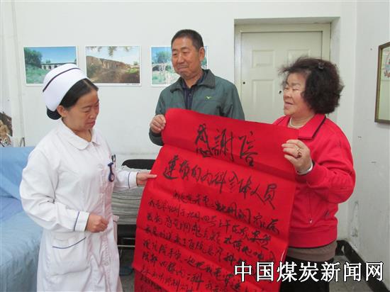 据患者家属称妻子曹二牡丹患有II糖尿病二十多年,而且还伴有高血压,冠状动脉粥样硬化性心脏病等多种疾病,曾多次在我院接受治疗,有过“心力衰竭”的病史。此次患病在家中对症治疗后9月4号上午突然出现胸憋、气短加重的现象,不能平卧,看情况不妙,他立即把妻子送入同煤三医院救治,经过急诊科初步诊断为“慢性心力衰竭”,之后积极把患者收入到相关科室——内三科进行抢救。当时患者血压154/86mmHg,血糖15.7 mmol/L ,在救治的过程中,同煤三医院内三的医护工作者积极主动、紧锣密鼓,针对患者情况进行了利尿、扩容以及降压等对症处理,病人病情得到控制缓解。 曹二牡丹是一名家庭妇女,家庭收入全靠老伴一个人的退休金,全年的医药费用已经入不敷出,子女们都没有工作,不能帮她,在这种情况下,同煤三医院内三科的医护工作者尽量给她用便宜药,减免一些相关费用,她住院8天,出院结算费用的时候,仅仅用去了1600元左右的医药费,同煤三医院想病人所想,打造老百姓放心医院,为低门槛、低收入患者带来了福音。 中秋将至,患者出院后心心念念着这所她心目中的好医院,求人写了这封感谢信作为中秋节的一份“礼物”送给同煤三医院内三科的全体医护工作者以示感谢。