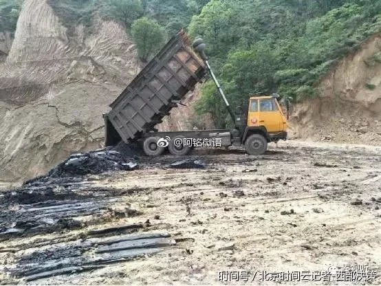 9月1日,本网工作人员在当地村民的指引下来到了贯屯煤矿的南沟,看到沟内随意乱倒着各种未经处理的煤泥,有的由于时间长已经渗入到地下土壤里,有的就倒在树根下,这些随意乱到的煤渣在一片青山绿水间显得尤为突兀和壮观,地表植被破坏的惨不忍睹,在很大程度上造成了生态破坏和水土流失。而后面的积水由于时间太长,看起来像一个完整的水库,这个形似水库的地方也是倒着各种煤泥。 然而最让人惊讶的是对面的山上,有几辆挖掘机正在挖山取土,而防护林的毁坏也较为严重。据其正在污染处的工作人员介绍称,在对面山上削山毁林只是为了取土填埋这些污染。 对于贯屯村煤矿的污染和毁林现象,本网工作人员首先来到了蟠龙镇政府。只见政府门口宣传牌上的还原青山绿水字样被黑色煤渣熏的黑乎乎。在蟠龙镇政府记者见到了纪检张书记,在讲明来意后,张书记将事件登记,并表示会于下周二(9月5日)回复,然而直至本网发稿,也未收到任何来自蟠龙镇的回复。 稍后,本网工作人员拨打了延安市宝塔区环保热线12369。其接线员表示其局领导陪同省上领导去检查工作了,关于此煤矿污染事件环保大队已经查阅过的多次,并对其进行行政处罚。但由于宝塔区环境监察大队工作人员有限,不能时时刻刻去现场盯着。而他们已经向上级部门申请,要求对贯屯煤矿下发停工通知。估计这两天就会得到批复。 大肆污染何时休