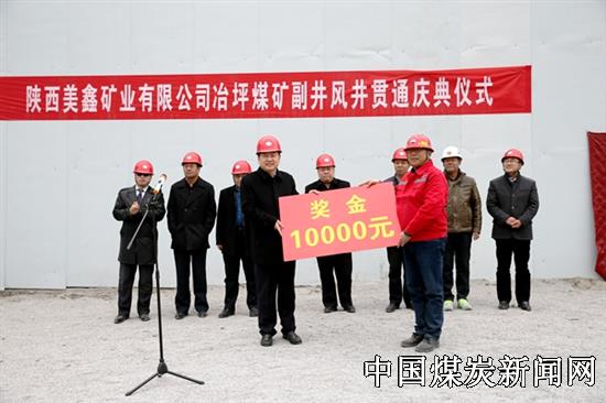 美鑫公司总经理封建利为圆满完成此次贯通任务的陕煤建设矿建二公司冶坪项目部进行了颁奖。要求参建各项目部继续严把工程质量关,强化安全管理,保证工程进度,确保冶坪煤矿安全顺利投产,为美鑫循环经济产业做出积极的贡献。