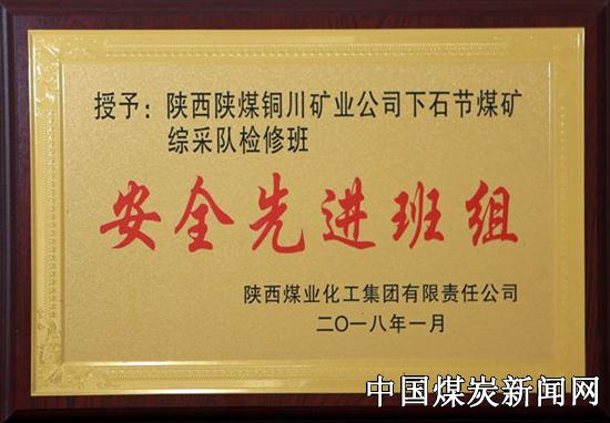 | 铜川矿业公司下石节煤矿综采队检修班荣膺陕煤集团安全先进班组殊荣 | |||