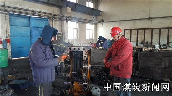 【本网讯】新疆赛尔能源公司为做好A3010工作面安装准备工作,提前组织人员检修煤机,更换损坏零配件,确保设备完好入井。图为检修现场。