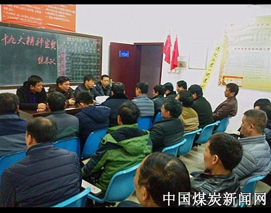 【本网讯】岁末年初,陕煤化工集团铜川矿业公司陈家山煤矿党委为了把学习十九大与公司“三会”精神贯彻好、落实好,以十九大精神激发党员干部向心力、执行力,为2018年起好步、开好局夯实基础,该矿实行矿党委班子成员包保,进区队向干部职工持续宣贯、续学十九大与公司“三会”精神,传递了正能量,把党的思想工作和公司2018年工作会精神不断向基层延伸。