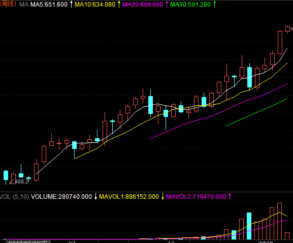 郑煤1805近阶段周K线图