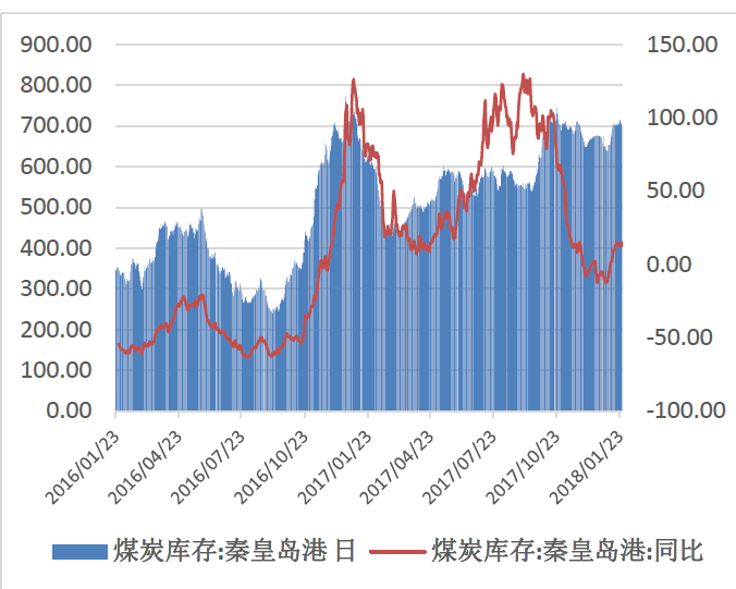 其次,预计煤炭进口量也将会回升。早在2017年底部分贸易商就表示,考虑到相关部门的政策限制,安排在12月到岸的进口煤数量不多,而是将船期推迟到了2018年1月。在国内煤价高企、相关部门暂时放松煤炭进口管制的情况下,2018年1月至2月煤炭进口量较2017年11月至12月回升是大概率事件。