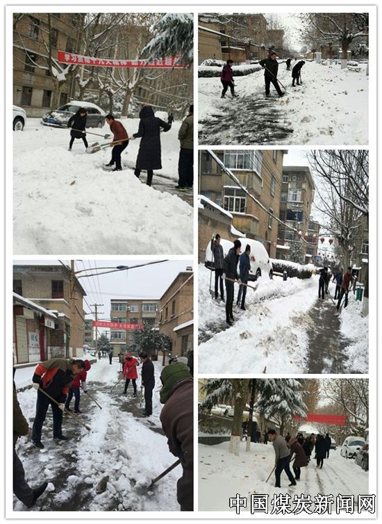 【本网讯】2018年1月3日,全省普降大雪,这是近十年来罕见的一场大雪,整个矿区银装素裹,增添了几分冬日的气息。但铺天盖地的积雪给职工家属们出行带来了严重不便。4日清晨,蒲白马村南桥社区机关科室及各小区职工自发组织义务扫雪活动,大家不畏严寒,纷纷投入到扫雪活动中,形成了这个冬季里最美的风景线!