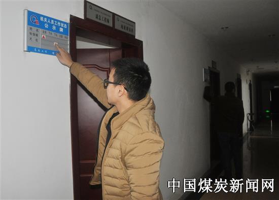 【本网讯】“今天下午,我准备去采煤二队参加安全学习日活动。”1月3日下午,在川煤集团广旺公司唐家河矿生产技术科“机关人员工作状态公示牌”前,副科长尤宏一边对着笔者说道,一边将自己的指示牌调到了“下队”状态。