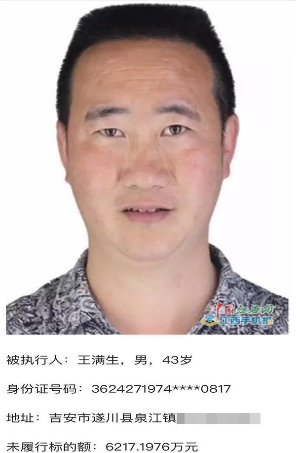 惩治“老赖”,各地再出重拳。近日,江西省吉安市遂川县一赖债6000多万的“老赖”被劝辞去遂川县人大代表职务。 遂川县第十七届人民代表大会代表名单部分,王满生在列。 澎湃新闻(www.thepaper.cn)记者近日根据读者提供的线索查询发现,上述“老赖”名叫王满生,是遂川县当地的一名房地产开发商,同时也是遂川富景房地产开发有限公司、江西富景房地产开发有限公司、江西省地王公馆餐饮有限公司、江西富景典当有限公司等多家公司的法定代表人。 2017年8月8日,吉安市中级人民法院公布了25人千万级“老赖”名单,赖债最多的多达1.1618亿余元,最少的为1039万余元。赖债6217万余元的王满生夫妇都被列入到此次公布的千万级“老赖”名单。 事实上,作为遂川富景房地产开发有限公司法定代表人、总经理王满生自2016年起就被列入了法院的“老赖”名单,同时他还一直担任着遂川县人大代表。 江西手机报 图 澎湃新闻记者从遂川县人大方面获得证实,在被列入“老赖”名单后,王满生确实仍担任遂川县人大代表。 2017年11月30日,遂川县人大网发布的遂川县第十七届人民代表大会第二次会议文件汇总资料显示,遂川县第十七届人民代表大会代表名单中王满生仍在列。 12月14日,遂川县人大选任联工作委员会一位彭姓负责人告诉澎湃新闻记者,王满生目前的确还是遂川县人大代表,2016年8月选举县人大代表的时候,当时政审时没有接收到相关反映,在其当选后,2017年春节前就有民工到县政府反映王满生拖欠了民工款,“当时县人大也想采取罢免措施,但是手续比较麻烦,让他自己辞,当时他又不肯辞。” “罢免的话,按照规定需要其所在选区50名以上选民联名提出,才能启动罢免程序。”上述负责人进一步解释说,王满生还是遂川县泉江镇集合村村委会主任,他在村里的反映又还好,只是一些债权人对他的投诉比较多,“我们现在还在做工作,上周还找了他,让他自己辞掉,他答应春节后换届会辞去县人大代表。” 澎湃新闻记者从最高人民法院中国执行信息公开网查询了解到,遂川富景房地产开发有限公司法定代表人王满生于2016年4月5日被遂川县人民法院列入失信被执行人名单,法院执行依据是(2015)遂民二初字第456号民事判决书:被告王满生自判决生效之日起10日内归还原告王建国借款本金人民币30万元及利息人民币7.2万元,并按照月息2分标准给付人民币30万元从2014年5月8日起至该款还清之日止的利息。 澎湃新闻记者注意到,从2016年4月5日起,王满生就不断被各级人民法院列入到被失信执行人名单,被列入到被失信执行人名单的次数多达16次。 2016年9月25日,中央办公厅、国务院办公厅印发《关于加快推进失信被执行人信用监督、警示和惩戒机制建设的意见》,其中明确,失信被执行人为个人的,不作为组织推荐的各级党代会代表、各级人大代表和政协委员候选人。 2017年8月8日,吉安市中级人民法院公布了25人千万级“老赖”名单,赖债最多的多达1.1618亿余元,最少的为1039万余元。赖债6217万余元的王满生夫妇都被列入到此次公布的千万级“老赖”名单。