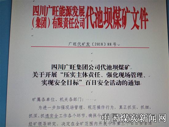 【本网讯】四季度是安全生产的重要时期,近日,川煤集团广旺公司代池坝煤矿出台了关于开展“百安活动”的通知,将“压实主体责任、强化现场管理、实现安全目标”作为百安活动的主旨,用良好的安全效果促进矿井扭亏增盈。