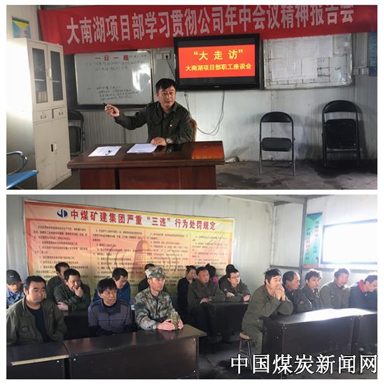 【本网讯】近日,中煤七十一处大南湖项目部组织召开了“工会主席大走访”活动座谈会。项目部班子成员、职工代表20余人参加了座谈会。