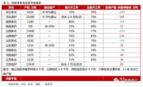 从8月份开始,由于环保和保安全等因素影响,山西、山东等地炼焦煤产量有所一定收缩,这部分收缩的产量在未来两三个月回归的预期不强,另外进入12月后,各地煤企还有保安全任务,尤其是对于多数的国有企业来说,确保全年安全生产的意义大于多生产的煤炭带来的收益,所以四季度炼焦煤的供应上相比前几年可能收缩更加明显。 1.1 四季度供暖季焦炭及焦煤供需情况评估