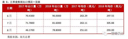 第四季度来看,10月份受国内假期因素影响,焦炭出口量一般会出现下滑,但11-12月份为出口旺季,国外钢厂年底备货等因素逐渐显现,焦炭价格若有所回落,出口量不乏将有进一步提升。