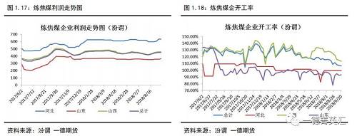2017年之前,焦企利润跌至-100附近时,将对接下来一段时间的焦企生产积极性形成制约,导致焦企-通常是山西地区焦企开始减产保价。 2017年起钢铁行业盈利好转, 钢厂盈利回升背景下允许上游焦化行业获得更多的生产利润。同时环限产对焦炭供应形成影响,也对焦企利润起到一定推动作用。