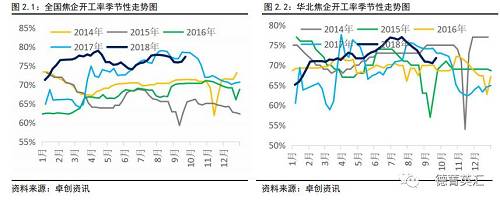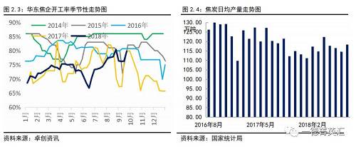 二、其他影响因素评估 2.1 季节性评估 季节性的角度来看,往年10-12月为下游钢材市场需求高峰期,同时推动焦炭及焦煤需求回升,价格上扬。而今年由于主产区及消费区环保限产预计将有所放松,焦炭的供应及需求或均不会出现较大幅度的下滑。预计今年煤焦日均产量或较去年同期小幅增加,但需求同时也有所提升,焦炭整体呈现供需平衡状态。
