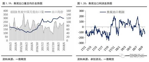 当前煤企整体利润较高,在利润驱使下,煤企开工率处于较高水平,部分煤企还有超产的情况。 1.4 进口及出口评估 出口方面,三季度国内焦炭出口情况相对较好,出口量基本好于往年同期。 通常来说,焦炭出口量与焦炭价格有着极为明显的负相关关系。但由于国外钢厂年内有部分投产,且国内焦炭供应紧张,尽管2018年三季度焦炭整体价格处于高位,然整体出口气氛较高,出口量持续保持较高水平。 出口利润方面,三季度焦炭出口利润整体不及前期,焦炭价格上涨较快,出口贸易商签单后承受较大的现货波动风险,导致整体出现一定亏损,粗略计算,三季度焦炭整体出口利润约在-37元/吨左右。