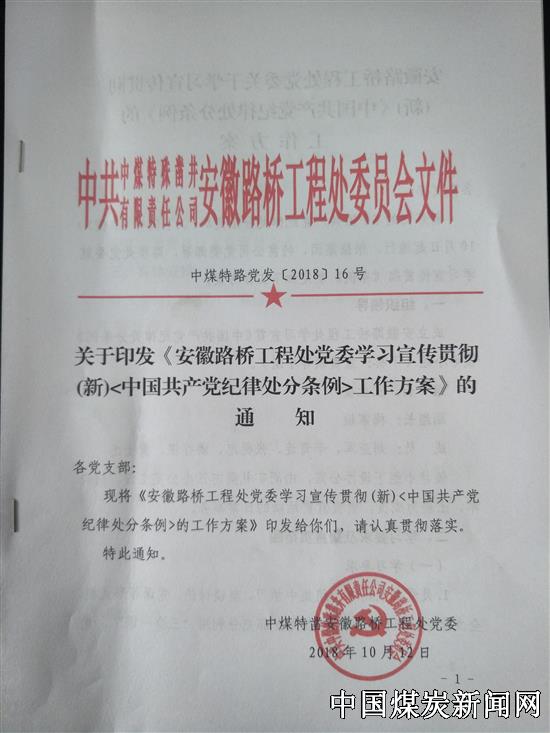 【本网讯】新修订《中国共产党纪律处分条例》于2018年10月1日颁布施行。为让广大党员尽快了解,安徽路桥工程处党委制定方案,积极部署,在全处党员中开展了学习宣贯活动。