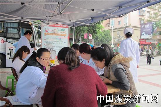 上午9:00,参加无偿献血的志愿者们陆续来到设置在矿山医院大门口的献血点,在抽取了血液样本,确认符合献血要求后, 志愿者们上了宜宾市中心血站的采血车,奉献爱心。