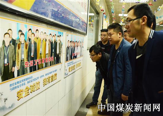 【本网讯】山东能源淄矿集团许厂煤矿公司扎实推进安全诚信班组建设,定期评比优秀诚信班组,并为其拍摄“全家福”在井口文化长廊展示。图为10月13日职工在最新评出的优秀诚信班组前驻足观看。