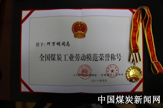 编者序:近日,国家人力资源社会保障部、中国煤炭工业协会联合下发《关于表彰全国煤炭工业先进集体、劳动模范和先进工作者的决定》,陕煤铜川矿业陈家山煤矿综采队何万明同志榜上有名,被授予 “全国煤炭工业劳动模范”称号。