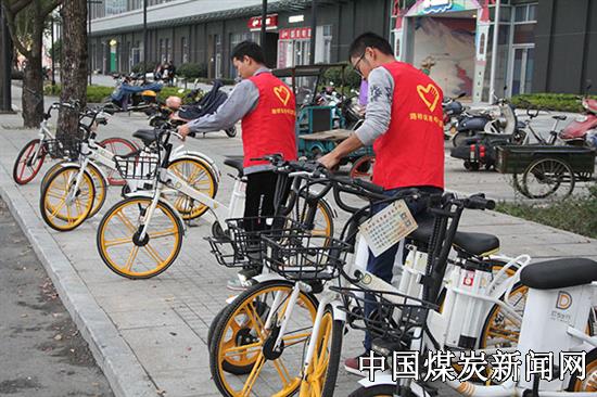 ![]() 整理共享单车。在星光耀广场门口,志愿者们一起将周边的共享单车摆放整齐。团员志愿者李玉虎一边将横七竖八的共享单车搬进黄线停放区摆放整齐,一边说道:“共享单车的确方便,闲暇时候上街买东西,我都很乐意骑,但希望大家方便自己的同时,也能好好爱护它们。”