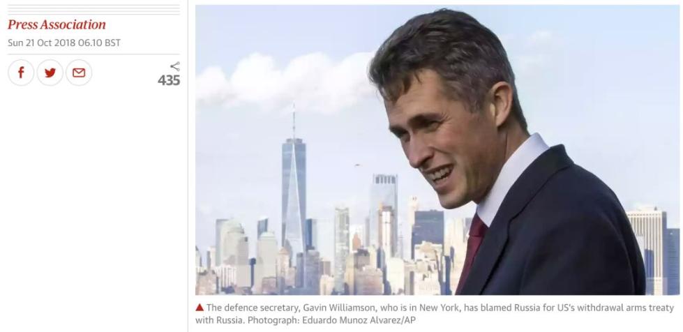 据美联社报道,在美国总统特朗普20日宣布美国将退出《中导条约》后,英国国防部长威廉姆森表示,“绝对坚决”支持美国。