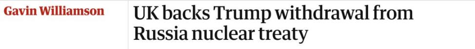 | 英国:“绝对坚决”支持美国退出中导条约! | |||