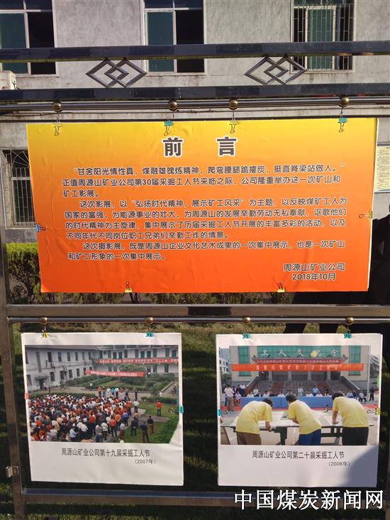 ![]() ![]() ![]() 庆祝活动始终精彩纷呈,高潮迭起,各项活动有序进行,矿区处处洋溢节日气氛。采掘工人“甘舍阳光情性真,煤融雄魄炼精神,爬弯腰腿跪攉炭,挺直脊梁站做人”;《矿山和矿工影展》摄影展览的幅幅倩影和身边的人和事把上班的工人吸引住,把庆祝引向高峰。78张相片从不同角度反映了煤矿工人为国家的富强、为能源事业的壮大、为周源山的发展辛勤劳动,无私奉献,体现和讴歌了周源山人建设美好家园的时代精神,集中展示从1989年第一届起历届“采掘工人节”丰富多彩的活动画面和劳动场景,历史的记录再现不同年代采掘工人的情怀。《矿山和矿工影展》既是周源山企业文化、艺术成果的历史性展示,也是矿山和矿工形象的完整集中体现。工人们发出感慨,我们在矿山挺好的!