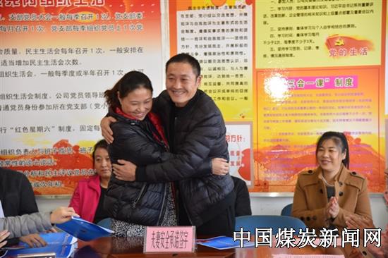 ![]() 签字仪式上,该公司10对矿工夫妻代表分别签订了安全承诺书。在热烈的掌声中,他们以一个深情的拥抱,向对方传递了爱的告白和保证安全生产的决心。