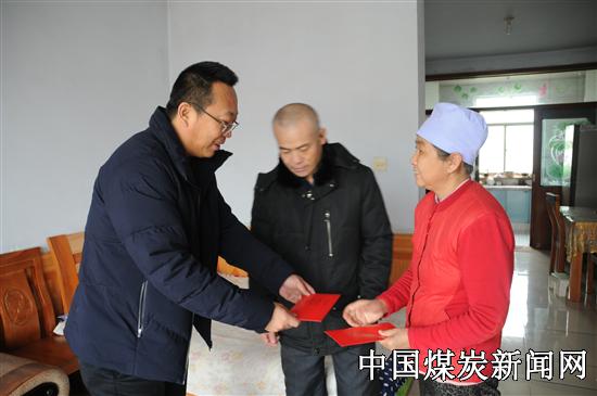 【本网讯】春节将近,近日,神宁太西洗煤厂开展送温暖慰问活动。今年,该厂确定困难帮扶对象36人,并积极采取厂领导一对一、中层管理人员三助一的精准扶贫政策,让困难员工真正享受到企业的关爱,共同战胜困难,走出困境,享受太西这个大家庭的温暖。 图为该厂负责人为困难员工送上慰问金。