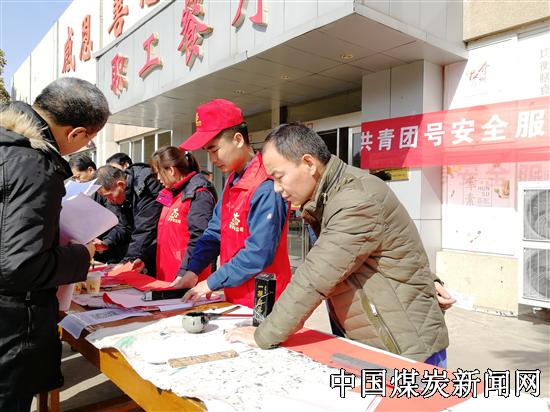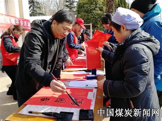 【本网讯】为营造安全祥和氛围,2月7日-8日,中国平煤神马股份帘子布公司团委在职工餐厅门前开展“共青团号安全服务车” 迎春送福嘱平安活动,现场写春联、送窗花、嘱平安,义务理发,吸引了诸多职工,在享受服务的同时,感受书法艺术魅力。