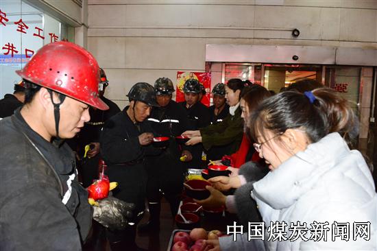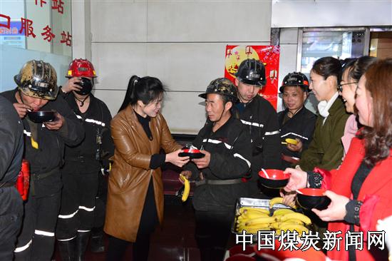 【本网讯】“甜甜元宵香飘来,浓浓深情传矿工”,2月27日,元宵佳节即将到来之际,山西潞安集团司马煤业公司的女工协管员们一如既往的来到该公司井口,为井下职工送上节日的祝福。活动中,协管员们早早等候在井口,等待上下井员工的到来。她们把一碗碗象征着团圆的元宵和象征着平安幸福、吉祥如意的苹果、香蕉、柑橘等水果送到上下井的职工手中,向他们表示节日的问候与祝福,叮嘱他们在工作中要时刻注意安全。该公司女工协管员们将井口作为安全宣教的一个重要阵地,坚持“冬送温暖、夏送清凉、节日送祝福、四季送爱心”,缝补工作服等活动的开展,突出了女工协管工作在安全工作中的独特魅力,深受矿工们的欢迎。
