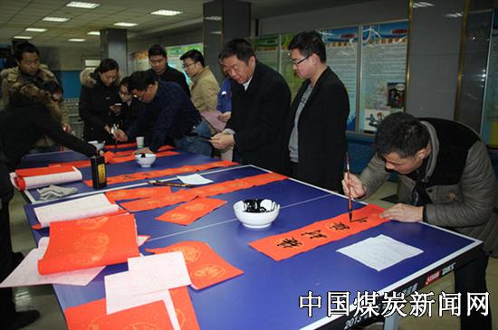 【本网讯】为了营造快乐祥和的春节气氛,弘扬优秀传统文化,2月2日上午,陕煤铜川玉华井候罐大厅人潮涌动,来自矿不同战线的4名书法爱好者正在挥毫泼墨,为上下班职工送上最温馨的新春祝福。