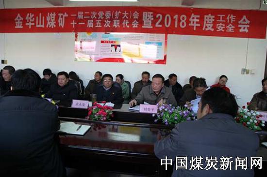 【本网讯】2月6日上午,陕煤铜川公司金华山矿召开党委一届二次党委(扩大)会、十一届五次职代会暨2018年度工作会、安全会。回顾总结2017年的工作,研究分析面临的形势,安排部署2018年的目标任务,进一步动员广大干部职工,坚定信心,锐意进取,不忘初心,不懈奋斗,为全面完成今年各项目标任务而努力奋斗。
