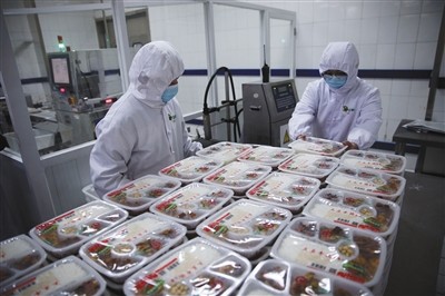 2月6日,高铁“后厨”熟制加工区工作人员在制作干炒牛河。 2月6日,X光检测仪对出厂的每一份盒饭进行检查。 2月6日,北京京铁列车服务有限公司配餐基地,蔬菜加工区工作人员正在切菜。本版摄影/新京报记者 王贵彬 戴上防尘帽和口罩,穿上“白大褂”,连脚上也得包裹上消毒鞋套,还需要通过消毒设备洗手,再经由风淋室的全身无死角吹风消毒……昨日,从头到脚都已经“全副武装”的新京报记者走进北京京铁列车服务有限公司的配餐基地。 据了解,今年春运期间,这个全国最大,世界第二大的铁路配餐中心,每天将为从北京发出的高铁、动车提供约2万份“高铁盒饭”。 “高铁盒饭”运输全程监控 4万多平米的生产车间,井然有序的流水线,这处坐落于北京动车段内的京铁列服配餐基地,担负着为中国铁路北京局集团公司94.5对高铁和动车配送盒饭的任务。 “我们基地有1300多名员工,目前已经达到了日产10万份的水平,进入2018年春运以来,日均产销餐食超过2万份。” 北京京铁列车服务有限公司新闻发言人贾涛告诉记者,暑期高峰时,基地曾日产3万份快餐盒饭,应对今年春运需求不成问题。 记者注意到,不同于人们传统印象中的火车盒饭,在配餐基地生产的“高铁盒饭”采取了全套标准化的作业模式,“主要分为冷链、常温链两种类型的盒饭套餐。冷链菜品保质期一般为72小时,在车上用微波炉加热后,就可供给旅客。而常温链套餐的一般保质期为3至6个月,一般是用于铁路等应急突发情况使用,比如在大雪等恶劣天气的时候,用于救援、被困等时供应。”贾涛说。 而为了能让每一份盒饭更加快速的送达旅客手中,京铁列服生产基地将天津西站的配餐方式由京津城际列车配送调整为汽车冷藏运输。但这样一来,从制作完成到送上列车,最短用时还不到12小时。贾涛告诉记者,虽然每天增加约800元运输成本,但延长了保质期内的销售时间,还保证餐食口味口感,而且还可以实现全程监控,防范食品安全风险。 盒饭出厂前需经X光“体检” 进入加工区,记者看到,蔬菜车间的员工正在对择好的蔬菜进行处理,将它们切好后备用。而在肉类处理车间内,各种肉类被整齐地分割成条、块,与所需的调料搅拌均匀后,码放在金属托盘内备用。在工作人员身旁,还时常有身着黄色工服的质检员来回巡视,对处理好的菜品进行二次视检。 制作餐饮,卫生是最基本的要求。北京京铁列车服务有限公司生产车间副主任孙轶告诉记者,根据管理规定,每名员工进入车间之前都需要进行两次更衣,米饭班组、择菜班组的员工上岗之前还得洗澡,然后再通过喷淋间进行除尘,才能进入生产车间内,而且手脚还要在消毒池内浸泡30秒,才能上岗作业。 而全部进入厨房的食材还要在基地的化验室内经过全方位检验检测,此外,每天生产的产品都要进行5天为期的留样,“至少要留存两份,一份抽检留样,另一份进行微生物检验。”工作人员说。 除了烹饪前的人工检测,在出厂前“高铁盒饭”还需要经过金属检测、重量检测和X光异物检测等数论“体检”。其中最为严格的要算是X光“体检”,它主要来筛查饭盒内的异物,被挑选出来的不合格产品将被一条分拣臂剥落至一旁的废弃篮内。每天还会有工作人员对这些“问题产品”进行再次分析,找出问题出现的那个环节,确保全链条上的食品安全。 揭秘 今年春运“高铁盒饭”新变化 种类更丰富 新增4种素食套餐 据了解,2018年春运期间,生产基地将根据不同线路及沿线区域性饮食风俗习惯和旅客用餐需求,生产6个价位(10元到99元)的18种套餐。此外,还为有特殊需求的旅客提供了素食套餐。 “与以往我们理解的素菜不同,这些素食套餐中原料是植物蛋白,利用各种烹饪手段模拟各种含肉菜品的味道,不是只有米饭和青菜。”据贾涛介绍,目前素食套餐有4种,包括“宫保鸡丁”、“黑椒牛柳”、“鱼香肉丝”、“番茄鱼排”,价格都是45元。“目前这四种素食套餐每日生产100份,还在小批量试生产阶段,未来根据市场需求还会逐步加大生产量,满足素食者的用餐需求。”贾涛说。 饭菜量更足 加一个菜价格不变 “高铁上的盒饭菜量太少,总是吃不饱”,相信这是旅客在高铁列车上用过餐后的共同感受。针对旅客反映的问题,京铁列服公司采取了“三菜变四菜,提质不提价”的应多措施。 贾涛坦言,之前的高铁盒饭都是将米饭和菜放在一个套餐盒内,有的旅客确实可能不够吃。而在今年春运期间,为了能充分满足旅客的用餐需求,所有45元以上档次的套餐中的米饭被单独装盒,而原先套餐盒内的空位则再增加一个菜,价格不变但是菜量增加。 他告诉记者,除了增加菜品分量外,下一步京铁列服公司还将根据旅客的反馈情况增加套餐种类,“目前最受旅客欢迎的是‘红烧肉’、‘梅菜扣肉’和‘宫保鸡丁’这三道菜,未来我们还将增添其他受到旅客青睐的菜品。” 味道更可口 特殊菜肴“开小灶” 虽然“高铁盒饭”全部采用冷链快餐生产工艺,但为了保证一些特殊菜品的口味,工作人员依然选择了费时费力的传统烹饪手法。记者在生产基地的厨房内一个小角落里看到,有两名厨师正在利用小锅制作一道干炒牛河。 “像是广东地区旅客爱吃的干炒牛河,以往我们也尝试过使用机器制作,可总也做不出这道菜原本的味道,现在则采用手工煸炒,人工大火快炒,炒制之后,还要进行速冷处理,