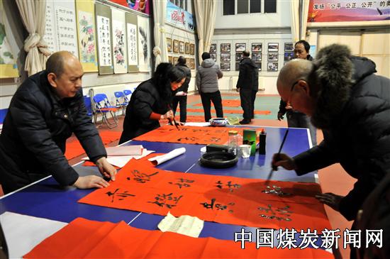 【本网讯】过新年,贴春联,是我国的传统习俗,在增添喜庆气氛的同时也寓示着平安吉祥。2月7日晚,河南能源义煤公司观音堂煤业书法协会成员在该公司体育中心书写春联送给职工,与广大干部职工喜迎新春,为职工送上吉祥,送上新春的祝福。