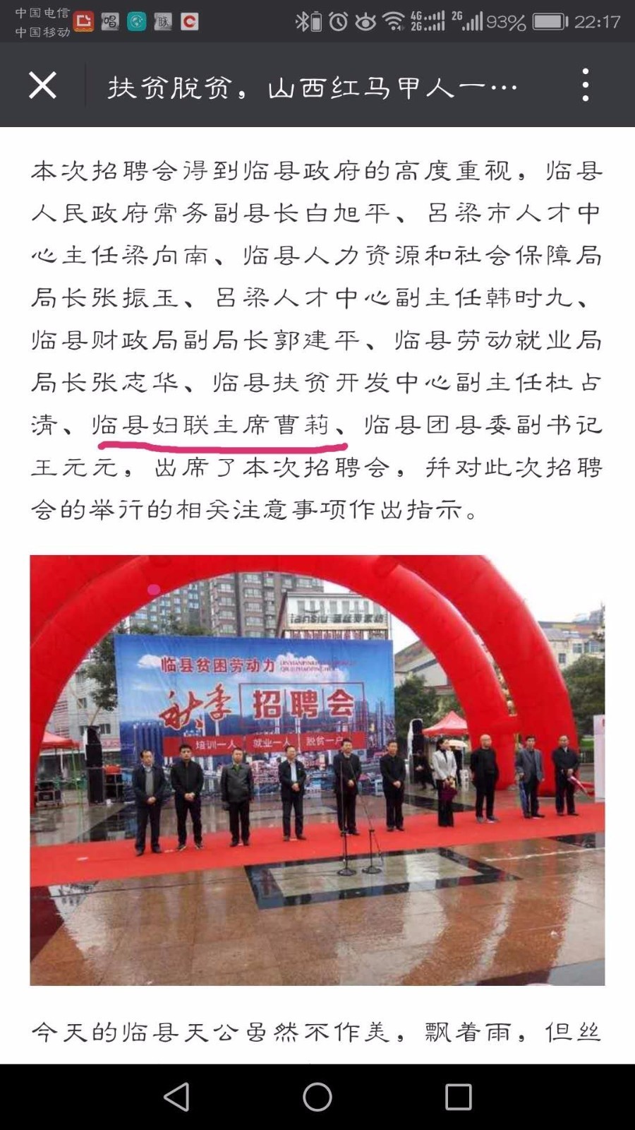 人民网链接:http://politics.people.com.cn/GB/14562/16689894.html 记者从山西吕梁市有关部门获悉:临县县委22日已免去“15岁当干部”的曹莉乡党委书记职务。 2011年12月20日,多家媒体就“山西吕梁临县15岁女孩当干部”一事,对临县安家庄乡党委书记曹莉参加工作时间提出质疑,引起山西省、吕梁省市各级党委的高度重视,有关领导分别作出重要批示,临县县委迅速组织对曹莉的档案进行认真审查。 经审查核实,1993年12月,时任临县副县长的曹兴旺在其女曹莉上高一时违反组织人事纪律,为其办理了招工手续;直至1996年7月曹莉从临县一中毕业后才开始上班。鉴于上述核查事实,临县县委于12月22日召开县委常委会,决定免去曹莉临县安家庄乡党委书记职务,并提名免去其乡人大主席职务。同时,临县县委已成立联合调查组对此事进行深入调查,严肃追究相关涉案人员责任。