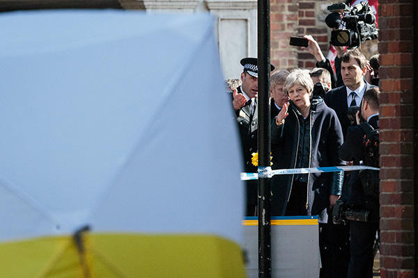 | 英首相亲赴俄前双面间谍中毒案现场 了解案件进展 | |||