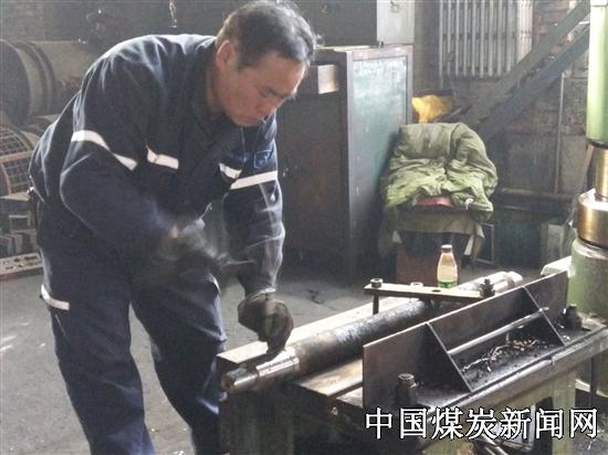 义煤石壕煤矿机修车间职工修复井下皮带中部滚轴