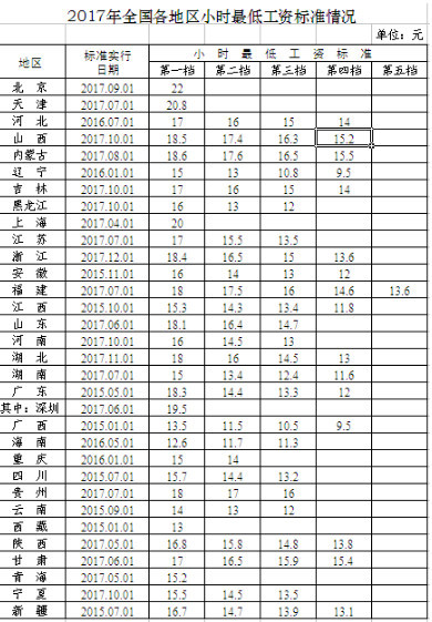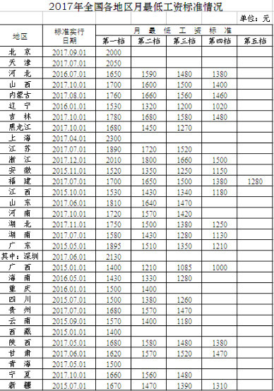 | 2017年共20个地区提高最低工资 你的工资高出多少? | |||