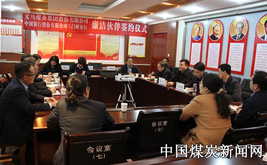 【本网讯】为进一步深化银企双方合作关系,促进廉洁共建与业务发展的深度合作,3月21日,中国银行三门峡分行与河南能源义煤集团举行了“廉洁伙伴”签约仪式。图为该行纪委书记与义煤集团纪委书记共同签订“廉洁伙伴”协议书。