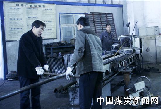 “这个‘金点子’好在利用现有设备就能解决实际问题,按常规方法除锈需要一个月,现在一星期就可以干完了,既节省了人力、物力,又节约了材料费”这是3月21日,河南洛阳义安矿业维修工和机电科副科长常怡军的对话。 据了解,该公司井下的400根镀锌钢管内部出现了严重铁锈,影响了乳化液进液量,造成初撑力达不到、液压支架推移受阻现象,严重影响了生产进度。为解决这一问题,机电管理人员通过现场勘察,积极想主意、出点子,找来一根长6米,直径21.5米的钢丝绳绳头打炸成球状,固定在机修车床上穿过镀锌钢管,开启车床带动钢丝绳旋转,达到清除铁锈的效果,极大提高了工作效率。