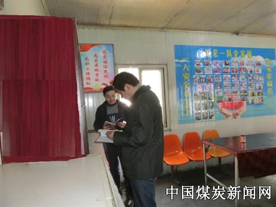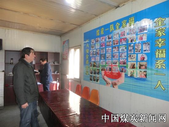![]() 王军首先听取了项目经理王士勇对项目生产情况和发展规划的工作汇报。随后,王军在项目部负责人的陪同下,深入井下进行安全检查。检查结束后,王军兴致勃勃地来到采煤1队连队学习室,指导连队管理和建设工作。在学习室内,他查看了职工个人班前会学习记录、连队企务公开栏以及连队全家福,对采煤1队在短短一年内所取得的成绩给予了充分肯定和高度称赞,并希望采煤1队进一步加强队组建设,将连队打造成为一支意志坚定、技术全面、敢打硬仗的模范队伍。