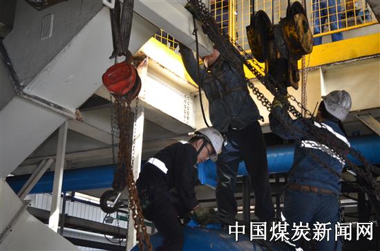 “调度室,我申请**停电”一声声对讲机的对话声标志着一场实力与智慧并存的攻坚战全面打响,随着设备的停电检修,笔者走进主洗车间,映入眼帘的是一个个爱岗敬业、无怨无悔的同事专心工作的神情,本次沙坪洗煤厂共进行了314离心机整体更换、904刮板溜槽耐磨处理等5项检修项目,而314离心机更换是此次大检修中首屈一指的大项目。