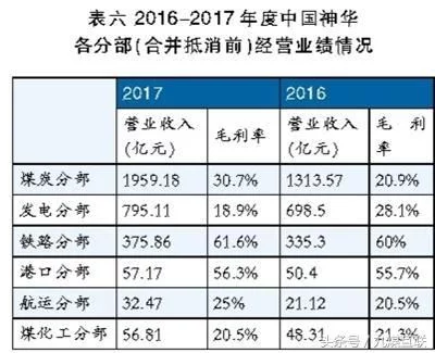 豪气分红 从未停止 梳理历年来神华的派息发现,自2007年10月上市以来,神华每年都坚持派息,从未间断(见表一),这在A股并不多见。除了上市首年外,神华每年分红都相当可观,即使在2015年,煤炭价格处于近年来最低点,全行业大面积亏损,神华还是派发了63.65亿元的分红,即每股0.32元的股息。 但笔者翻阅其它煤炭企业财报发现,并不是所有煤炭企业都能每年分红,即使分红也没有如此大手笔(见表二)。 业绩稳定 底气十足 稳健经营 业绩一枝独秀 翻阅中国神华和其他煤炭企业的历年财报,发现一个令人震撼的事实:神华的经营业绩在行业遥遥领先,一枝独秀。 神华2017年的营业收入达2487亿元,与兖州煤业、中煤能源和陕西煤业三者之和相当,而后三者是煤炭行业排名前几的上市公司。 神华2017年的营业净利润达540亿元,归属股东的利润达450亿元,近兖州煤业、中煤能源和陕西煤业三者之和的2倍。 神华2017年的每股收益达2.26元,与兖州煤业、中煤能源和陕西煤业三者之和相当。 如果只有仅此一年的好成绩,那当然没有什么。并且,2017年煤炭行业形势好,取得成绩是正常的。但是,如果长期如此呢? 事实就是,多年以来,神华业绩一直如此(见图一、二、三)。特别值得一提的是2015年,在那个煤企大面积大幅度亏损的年份,中国神华依旧录得了263亿元的净利润,而表现很好的兖州煤业也仅录得8亿元的净利润。 如此,神华年年分红也就不意外了。再深入研究神华财报,发现分红不是意外,而是理所应当。 现金充足,未分配利润高企 2017财年末,神华的货币资金达810亿元,是兖州煤业、中煤能源和陕西煤业三者之和的1.5倍;神华的未分配利润达1824亿元,也近兖州煤业、中煤能源和陕西煤业三者之和的2倍。过去5年,神华的货币资金一直都遥遥领先于同行业其他企业,未分配利润更是如此(见图四、五)。 充足的现金,高企的未分配利润,年年分红似乎理所当然了。 资产负债率低 偿债能力强 众所周知,煤炭行业是资本密集型行业,投资大,负债率高是近年行业企业给人的印象。那么,神华债务状况如何呢? 翻阅近年来神华和其它一些煤炭行业企业的债务状况,真实情形再次让人大吃一惊。如果说兖州煤业、陕西煤业和中煤能源等是优等生,那么,神华与其相比更为优秀(见表三、四、五)。 连续多年,资产负债率都在33%左右,相比兖州煤业、陕西煤业和中煤能源等企业更低。但是,这只能表明其资产比较多,负债相对少,不能说明其偿债能力强。若再着眼于流动比和速动比,神华并不具有明显的优势。但是,多年都保持在1以上,证明其偿债能力还是优于兖州煤业、陕西煤业和中煤能源等企业的。 盈利能力稳定强悍,现金充足,偿债无忧,连续大手笔分红也就底气十足了。同样是煤炭行业,为什么别的企业就没有这底气呢?这不禁让人联想神华的经营模式有什么奥秘。 模式独特 结构合理 中国神华是全球最大的煤炭企业之一,其采取的是纵向一体化经营模式,其主营业务涉及煤炭、电力的生产和销售,铁路、港口和船舶运输等业务。可以说,神华获取了煤基产业链上每一环节的经营利润:上游的煤炭生产销售,中游的煤炭铁路、港口和船舶等运输,下游的煤炭发电和煤制烯烃等。这样的模式显然有助于其降低运营成本、提高业务竞争力。 根据财报,神华煤炭的生产消费等各个环节的毛利率之间差别很大,其中铁路和港口运输的毛利率最高,都在60%左右;而其余的煤炭、航运、发电和煤化工等的毛利率相对较低,在20%-30%之间(见表六)。 不仅如此,这些环节的毛利率之间也会相互影响,具有一定的相关性(见图六)。每当煤炭价格上升的时候,煤炭生产销售环节的毛利率上升,此时铁路、港口和航运环节的毛利率也会跟着上升,而发电和煤化工环节则会下降,其中相关性最明显的就是煤炭生产销售环节和发电环节的毛利率,二者呈明显的负相关,一方升高必然导致另一方下降。 显然,神华的纵向一体化模式有利于抵消煤炭价格波动对经营业绩特别是经营利润的影响,更容易保持经营业绩的稳定。 当然,神华经营业绩的稳定不只取决于其经营模式,更取决于其各个经营环节在整个企业中所占比重(见图七)。根据神华历年财报,煤炭部门营业收入占神华总营业收入比重的50%-60%之间,这主要取决于煤炭价格;而发电部门的营业收入则在20%-30%之间,这两者占比常年在80%左右,剩余的铁路、港口和航运部门则接近20%,煤化工则很小,不到2%。这与其它企业相比,优势十分明显。 兖州煤业是山东最大的煤炭企业,也是近年来业绩最优秀的煤炭企业之一,其采取的是实体产业、金融产业和物流贸易“三位一体”产业经营模式。 根据2017年财报,其煤炭主营业务中煤炭和煤化工占比高达98%(见图八、表七),经营业绩显然很容易受到煤炭价格冲击。其业绩之所以出色在于其收入构成,煤炭业务仅仅占33.04%,而非煤炭贸易则高达61.78%(见图九)。可以说,其更像是个大宗商品贸易企业而不是煤炭企业。 陕西煤业是陕西最大的煤炭企业,其采取“产业+资本”的产融结合模式,积极布局新能源优质资产,初步形成了“煤炭+轻资产”、“传统能源+新能源”的产融互动体系。但是效果并不明显,2017其煤炭收入占比高达95.68%,经营业绩也很容易受到煤炭价格冲击(见图十、表八)。 中煤能源是中国最大的煤炭贸易服务商之一,其采取煤炭全产业链经营模式,即
