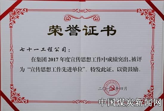 | 中煤七十一处获评集团2017年度宣传思想工作先进集体 | |||