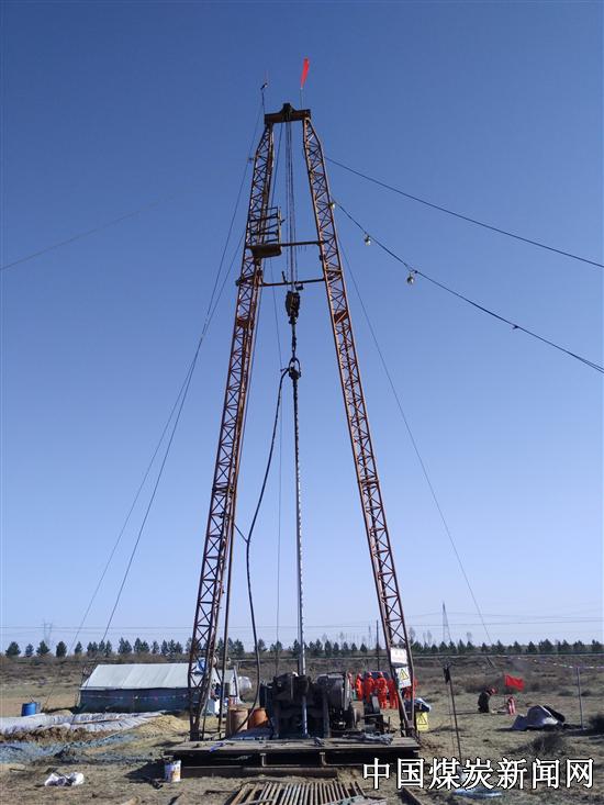 【本网讯】4月14日,经过现场踏勘、施工设计优化、占地协商、设备进场等多环节严密组织,由中煤华盛公司承揽、水文一队组织施工的《内蒙古银宏能源开发有限公司泊江海子矿井水文地质补充勘探与封闭不良钻孔启封、113102工作面采后覆岩破坏探测工程》J -13水文观测孔正式开钻。
