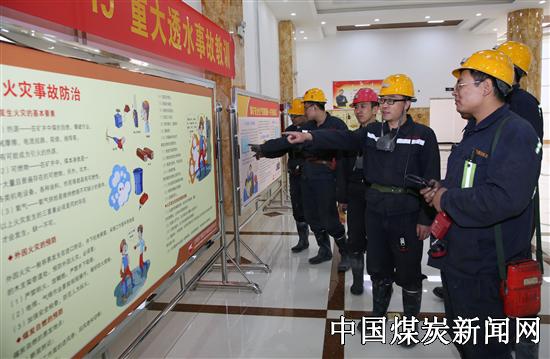 北辛窑煤业公司牢固树立安全发展理念,充分利用广播、电视台、电子显示屏、宣传橱窗、QQ微信群等平台,大力宣传安全生产法律法规、安全知识及安全管理过程中新举措、新方法,有效地提升了一线职工的安全思想认识和安全防范能力。图为该公司职工入井前参观火灾事故防治知识展板。