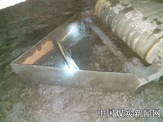 ![]() 为解决这一问题,在缓冲机尾处设置一“三角形”分泥矸装置,机尾前移时将机尾前淤泥积水分向两侧,从而使机尾下平滑前移,避免了淤泥阻塞皮带、直托辊掉落、不转现象。此工艺适用于综掘工作面的应用,以综掘机作为牵引动力源,在前移缓冲机尾时,安装在机尾部的分泥板将淤泥积水推向两侧,使底板变得平滑,便于清理,避免了人员在二运下清理淤泥带来的安全隐患,节省了材料设备的投入,提高了劳动工效。 山东能源临矿集团田庄煤矿经过实践证明在综掘机缓冲机尾安装分泥装置,此创新方法得到广泛应用,效果明显。本工艺可应用于所有综掘机使用,填补了使用综掘机带来的淤泥积水不好清理的技术空白,具有推广的价值,在使用中不断完善,举一反三。